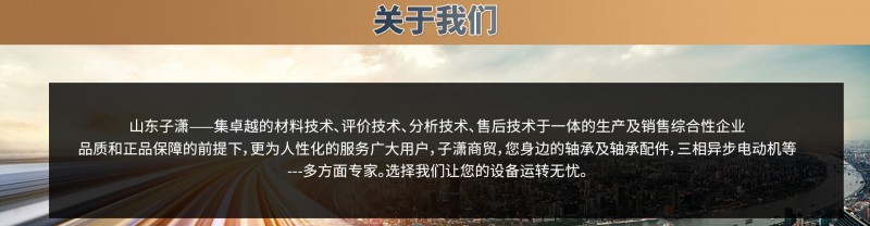 山东子潇商贸轴承配件有限公司创立于2011年,是一家轴承技术研发 生产 精密轴承制造 销售为一体的自主品牌公司,经营经销各类型的精工细作轴承以及配件和三相异步电动机等。代理了HRB,LYC,ZWZ,TMB,LK,FK,人本轴承等国内知名品牌,并和进口轴承NSK,SKF,FAG,TIMKEN等建立了良好的合作关系,满足广大用户需求。公司秉承与时俱进 提高轴承寿命的经营理念,最大程度的把轴承发挥到高品质的领域,应用领域有(治金 矿山 石油 电力 造纸 水力 纺织 农业 起重机 机电等)每一款轴承都采用精密机床制造,从原材料 锻造 淬火 车加工 磨床工 装配 检测 成品入库 打包 发货 尽心尽力的为客户提供适用的产品。 真诚 踏实 质量 专业品质保障服务是公司开创以来的宗旨,您的需求是我们工作的方向,您的满意是我们前进的动力,为客户创造价值,协作 共发展,赢未来。