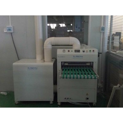 产品名称:吸塑除尘机 吸塑Tray除尘机 型号:TL-C5511 吸塑盒除尘机也称吸塑托盘除尘机、吸塑包装托盘除尘机,是一种非标自动化除静电除尘设备,由于它操作简易,除尘效果好,被广泛应用于吸塑厂、电子厂、医疗包装托盘等吸塑盒表面除尘,多数用于吸塑厂、吸塑行业表面除尘。 吸塑盒除尘原理:   吸塑盒由于材质以及在生产过程中,容易产生静电,静电吸附环境中悬浮的粉尘以及纤维等异物,吸塑托盘除尘器运用高压发发生器通过静电棒产生正负离子,与吸塑包装盒表面静电中和,高压风除尘,此为吸塑盒除尘机工作原理。