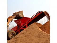 铲车将毛料铲入上料斗后,毛料由料仓的出料口直接进入转筛,转筛将毛料分离,细沙通过筛孔落在皮带运输机上,粗砂由于网筛的阻拦晒被直接排出。工作完成。