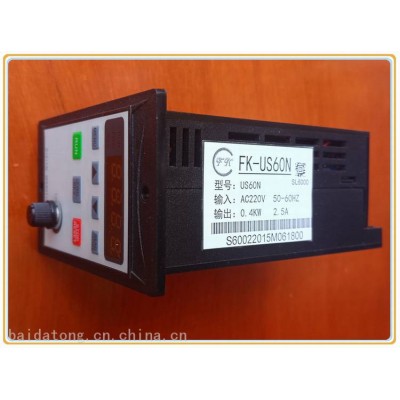 FK-US60N变频调速器采用进口高速微处理器和进口IPM模块为核心,功能强大! 可用于三相电机、单相电容电机或者适合用于齿轮减速电机的变频器。可代替US-52,US-22等电子调速器,而不需要反馈线。大家都知道其他普通变频器接单相电机和减速电机会造成电机噪音大,电机抖动、发烫或者烧坏电机,因为普通变频器输出是120℃移相,单相电机是90℃移相,而且减速电机使用普通变频器会超压烧坏,所以要选适用于减速电机变频器。