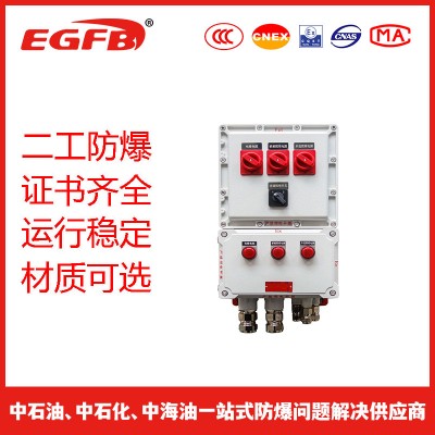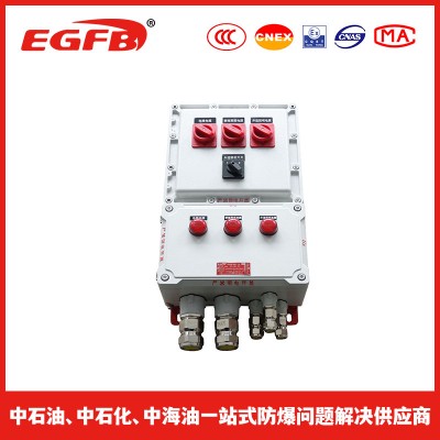 通过将多个防爆电磁起动器或电磁起动箱和防爆断路器、操作柱和防爆接线箱等组合,可在电压380V的三相交流50Hz的配电系统中实现动力配送及电动机的集中控制,支路最大可达160A,可根据用户要求实现远距离控制,并可根据要求装信号灯、电压表、电流表等监控装置;